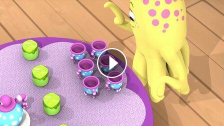 تقيم وحش "سيدني سكويد" حفل شاي الحبر الوردي، لكنها تحتاج إلى مساعدة لحساب عدد حلوى "الخطمي" بقوامها الرخو الخادع لتتأكّد أنها طلبت ما يكفي.
