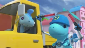 نعلم أن الديناصورات انقرضت منذ زمنٍ طويل، لكن في هذا المسلسل، ما زالت الديناصورات تعيش في جزيرة غامضة لا يعرف موقعها أحد، هي جزيرة كون كون. وتتمتع الديناصورات التي تعيش في هذه الجزيرة بنشاطات اجتماعية وذكاء كبير، وتستطيع أيضًا التواصل مع البشر والتعايش معهم بسلام. كما أن الديناصورات آكلة اللحوم لا تأكل الديناصورات الأخرى. ووجود هذه الجزيرة سر بين جوي وجدّها اللذين يبنيان بلدة للديناصورات ويؤسسان فريق إنقاذ من خمسة ديناصورات بقيادة البطل داينو لمساعدة الديناصورات التي تتعرض للخطر.الكثير من المغامرات الشيقة بانتظار داينو وفريقه.