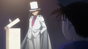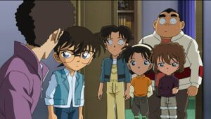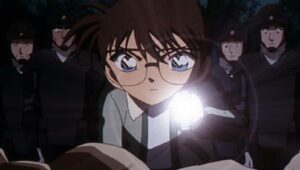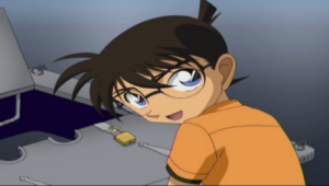 تبدأ القصة بظهور الشخصية الرئيسية سينشي كودو ذو السبعة عشر عامًا، وهو طالب في المدرسة الثانوية ومتحرٍ يساعد الشرطة والمفتش ميغوري في حل بعض القضايا، مشهور بذكائه وعبقريته التي تُفاجئ الجميع باستنتاجات تخالف التوقعات. وفي يوم من أيام العطلة خرج مع صديقة طفولته ران موري إلى مدينة الملاهي، وحدثت جريمة قتل داخل الأفعوانية وحلها كالعادة بذكائه ومهارته، وبينما كانوا هناك لمح سينشي كودو رجلًا ذو ملابس سوداء يقوم بعملية ابتزاز. فأراد معرفة القصة، فما لبث إلا أن ضُرب من الخلف وسقط مغشيًا عليه، ومن ثم أُجبر على تناول عقار جديد، لم يستخدم من قبل إلا على الفئران وظن الرجل ذو اللباس الأسود أنه سيقتله ولن يترك فيه أثرًا للتسمم لكن العقار السام تسبب في تقلص جسده ليصبح فتًى في السابعة من عمره. تلك الحادثة التي وقعت في مدينة الملاهي تسببت بولادة بطل المسلسل كونان إيدوجاوا وتغير حياة سينشي كودو.