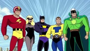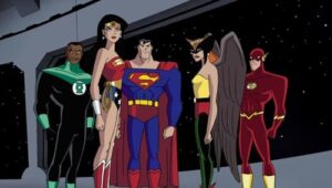 فريق العدالة – المسلسل : في مسلسل الرسوم المتحركة هذا، يحارب كل من “سوبرمان” و”باتمان” و”وندر وومان” و”فلاش” و”غرين لانترن” و”مارشن مانهانتر” و”هوك جيرل” الجريمة بصفتهم “فريق العدالة”.