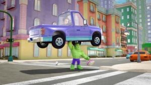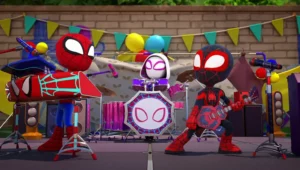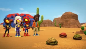 انطلق مع بيتر باركر، جوين ستايسي، ومايلز موراليس في مغامراتهم المثيرة، حيث يتحد الأبطال الشباب مع هالك، الآنسة مارفل، والنمر الأسود لمواجهة أعداء مثل راينو، دكتور أوكتوبوس، وجرين غوبلن. وفي خضم المعارك الملحمية، يكتشفون أن العمل الجماعي هو السر الحقيقي لإنقاذ اليوم!